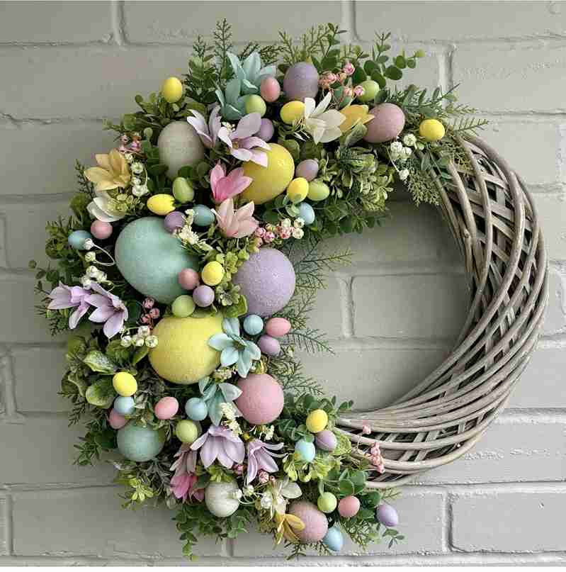 Expert designers often suggest that the best wreaths play with varying heights and textures to create visual depth and interest. Just remember to keep the process lighthearted and don’t worry about every single egg being perfectly straight.