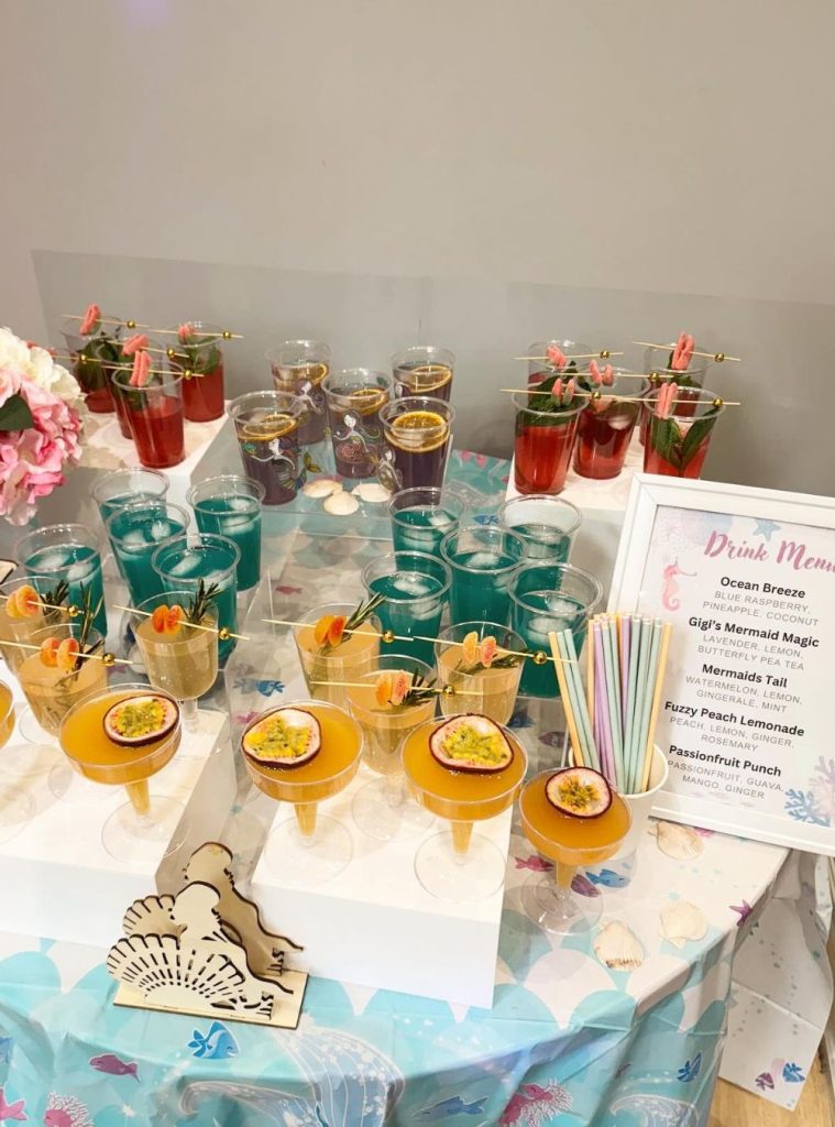 The energy is playful, imaginative, and full of personality, perfect for a summer shower or a “Little Mermaid” fan. It’s a high-energy station that brings a lot of color and fun to the party’s refreshment area.