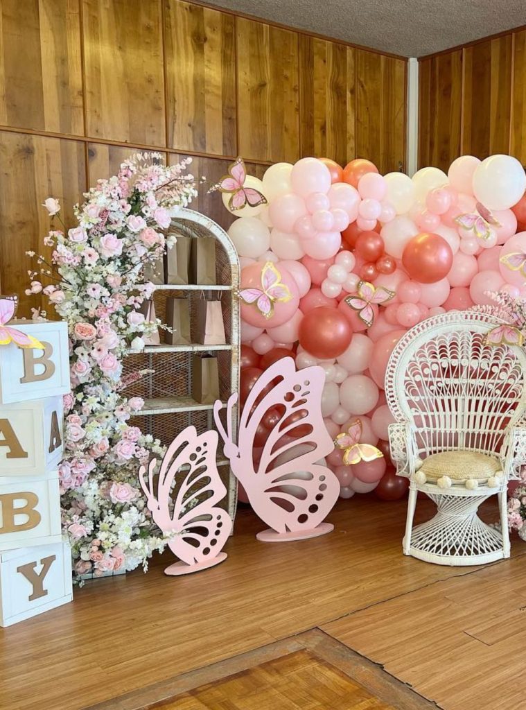 The sheer volume of balloons and flowers creates a lush, maximalist garden vibe that feels very celebratory and “extra” in the best way. The butterflies add a sense of movement and whimsy, making the whole scene feel like it’s fluttering with excitement.