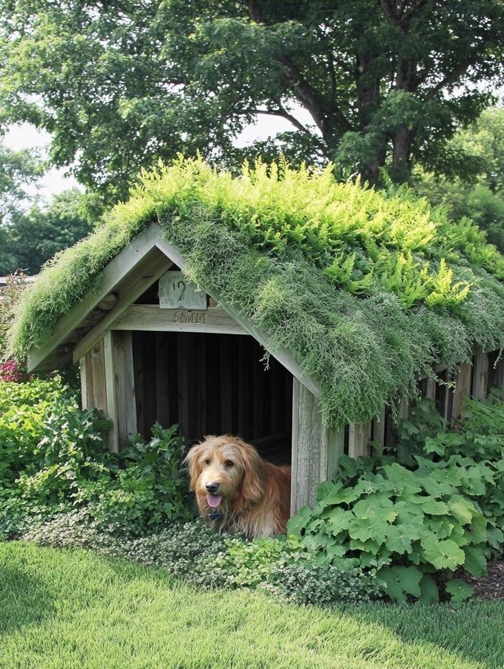 Creating a cozy dog house in your backyard is a wonderful way to give your pet a special retreat. The image shows a charming wooden dog house surrounded by vibrant flowers and lush grass. This inviting setup not only looks great but also provides a safe space for your dog to relax.