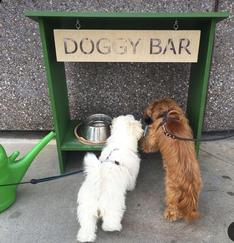 The feeding station features raised bowls, which can be easier for dogs to access. This design helps keep the area clean and reduces mess. Having a designated spot for meals can also help train your dogs to eat in one place.