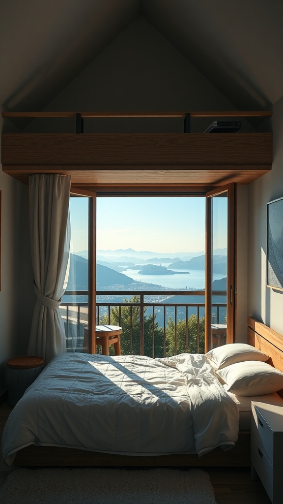 Imagine waking up to a stunning view every morning. This loft bed design takes advantage of outdoor access, creating a perfect blend of indoor comfort and nature. The elevated bed gives you a cozy sleeping area while the large windows invite the beautiful landscape inside.