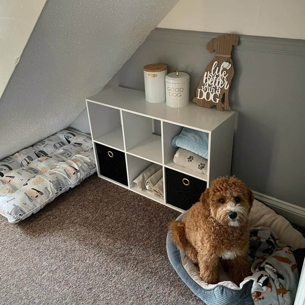 We can achieve this with so many adorable looks—think built-in under-the-counter havens, stylishly decorated kennels that look like furniture, personalized wall galleries dedicated to their sweet faces, or even just a cozy corner tucked perfectly under a roof slope.