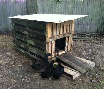 Using pallets for this project not only saves money but also allows you to repurpose materials. You can easily find pallets at local warehouses or stores. Make sure to choose sturdy ones that are free from chemicals. The duck house shown in the picture has a sloped roof, which helps to keep rainwater from pooling inside, ensuring a dry environment for the ducks.