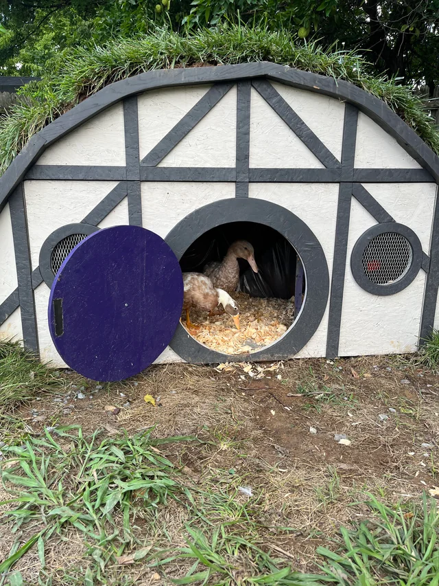 Creating this duck house can be a fun DIY project. Start by using natural materials, like wood and stone, to mimic that hobbit style. Add some flower beds around the entrance to make it inviting. This way, your ducks will have a delightful retreat that looks as if it came straight from a fantasy book!