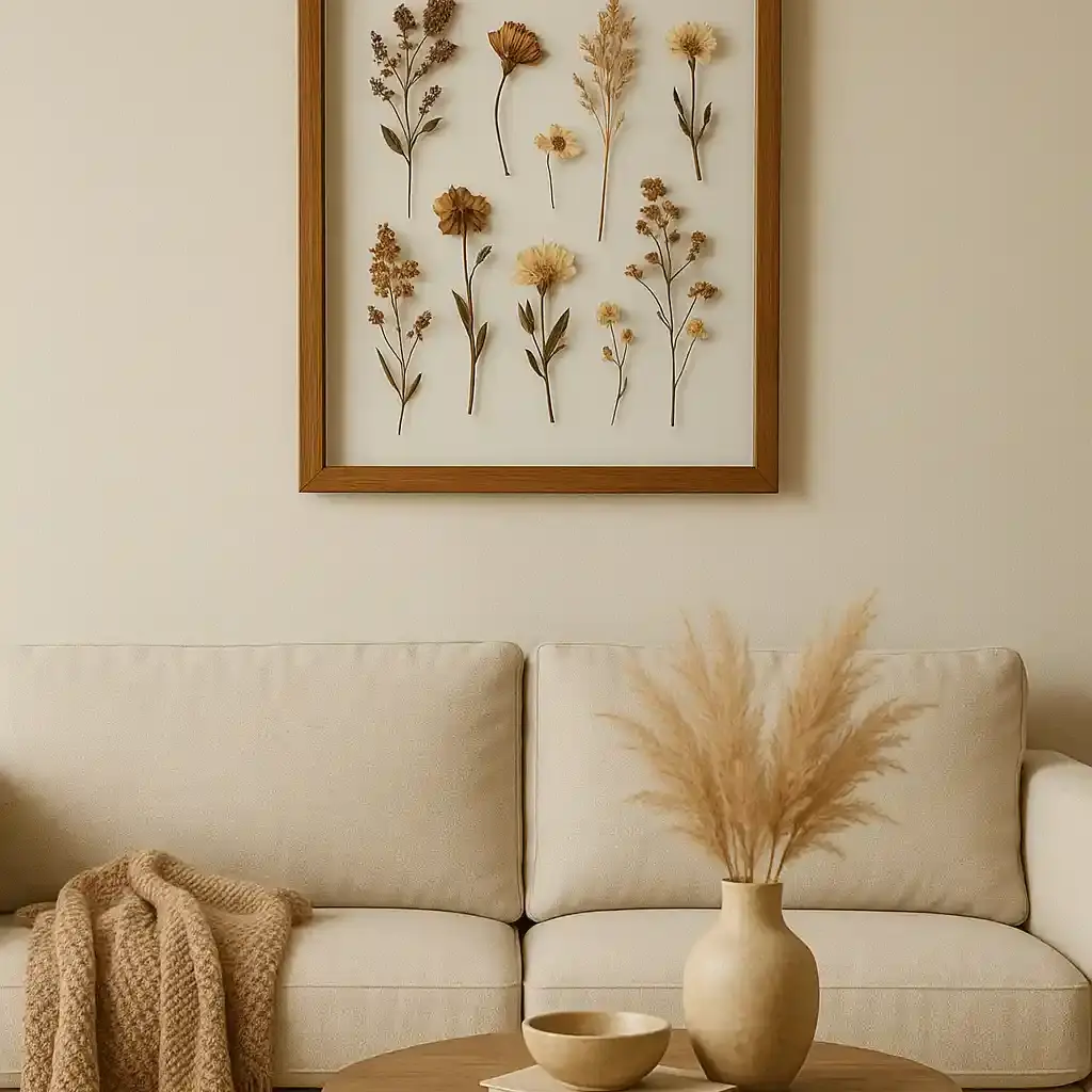 Start by selecting your favorite flowers—whether wildflowers, roses, or even pressed leaves—and carefully dry them out. You can use a flower press, or if you don’t have one, simply press them between sheets of parchment paper and place them under a heavy book. Once they are fully dried, you can arrange them in a frame or on a canvas to create a unique piece of art.
