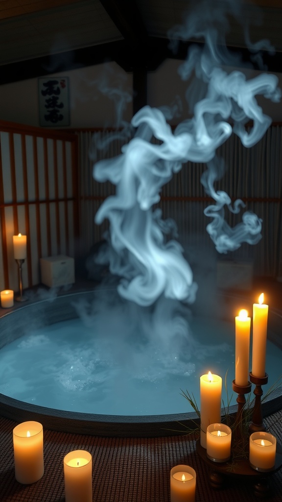 In this image, you can see a beautifully arranged bath area that captures the essence of relaxation. The soft glow of the candles adds a calming touch, while the steam creates an enchanting visual. It’s all about creating a peaceful environment where you can unwind after a long day.