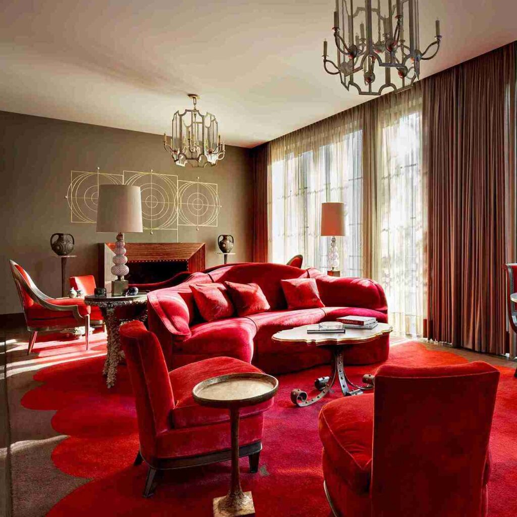 Imagine stepping into a living room where bold red meets crisp white. This color combination creates a striking visual impact. The vibrant red walls energize the space, while the white furniture offers a refreshing contrast.