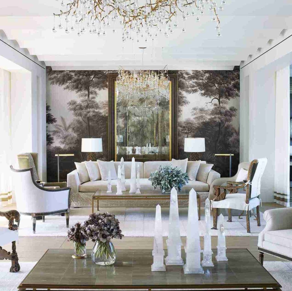 The image showcases this pairing beautifully. The deep plum walls provide a striking backdrop, complemented by cream-colored furniture that softens the look. The elegant chandelier and decorative accents enhance the overall charm, making the room feel inviting.