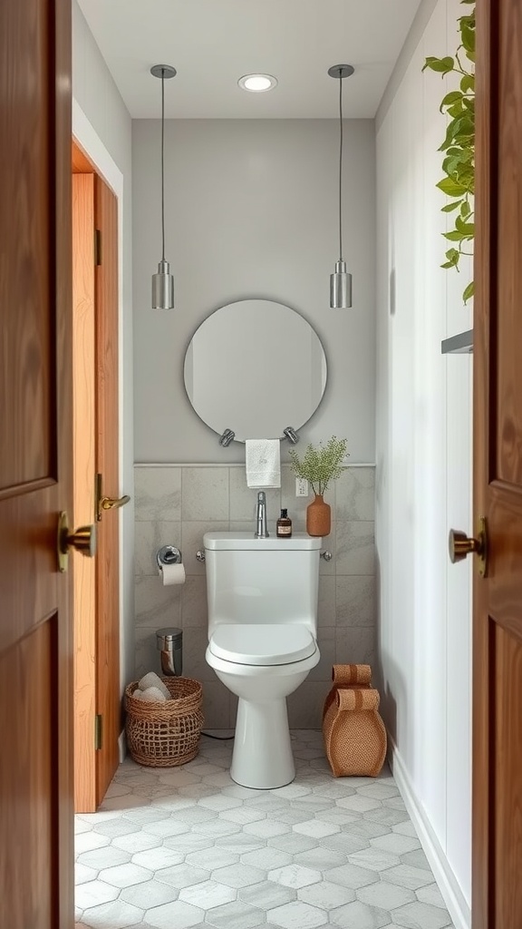 The choice of accessories, such as the woven baskets, adds texture and organization. They’re not just decorative; they serve a purpose too. This blend of function and style is key in a small space. A potted plant on the sink offers a splash of greenery, creating a fresh ambiance that can brighten any bathroom.