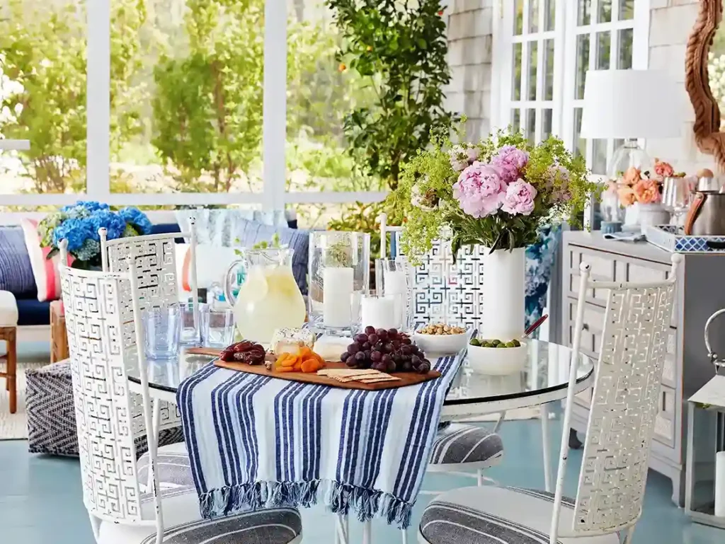 The feeling here is pure joy and summer relaxation. You can easily elevate your outdoor meals by using real cloth napkins and a coordinated tablecloth instead of paper products.