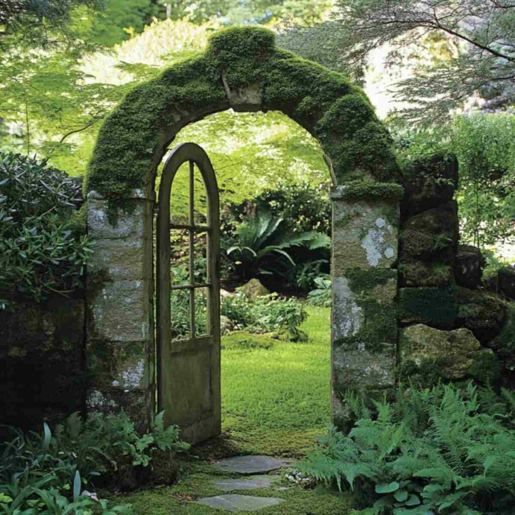 It creates a peaceful, timeless atmosphere that feels like a scene from a dream or a classic film. To achieve this, use “moss slurry” on new stonework to quickly encourage that beautiful, aged green patina.